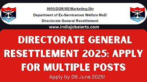 Directorate General Resettlement (DGR), Department of Ex-Servicemen Welfare, Ministry of Defence, invites online applications for 4 Young Professional positions in HR, Marketing, and Social Media roles. Eligible Candidates must apply through fill Prescribed Application Portal by the extended deadline of 06/06/2025. In this article, young job aspirants can find DGR vacancy details, eligibility criteria, selection process, and the application form.